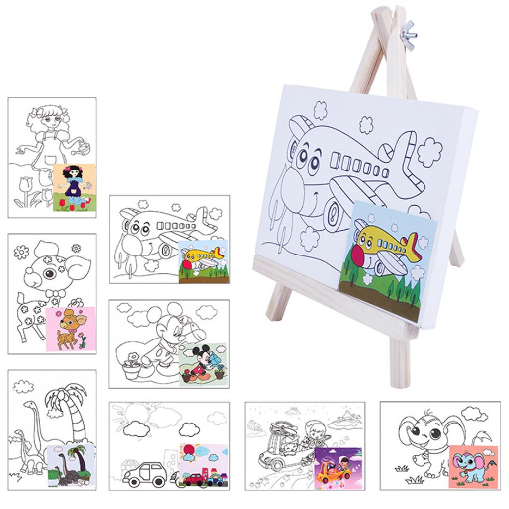 Canvas Paint Set with Paint Tools DIY Painting Kit with Pre-Drawn Canvas + Mini Wooden Stands | Shopee Philippines